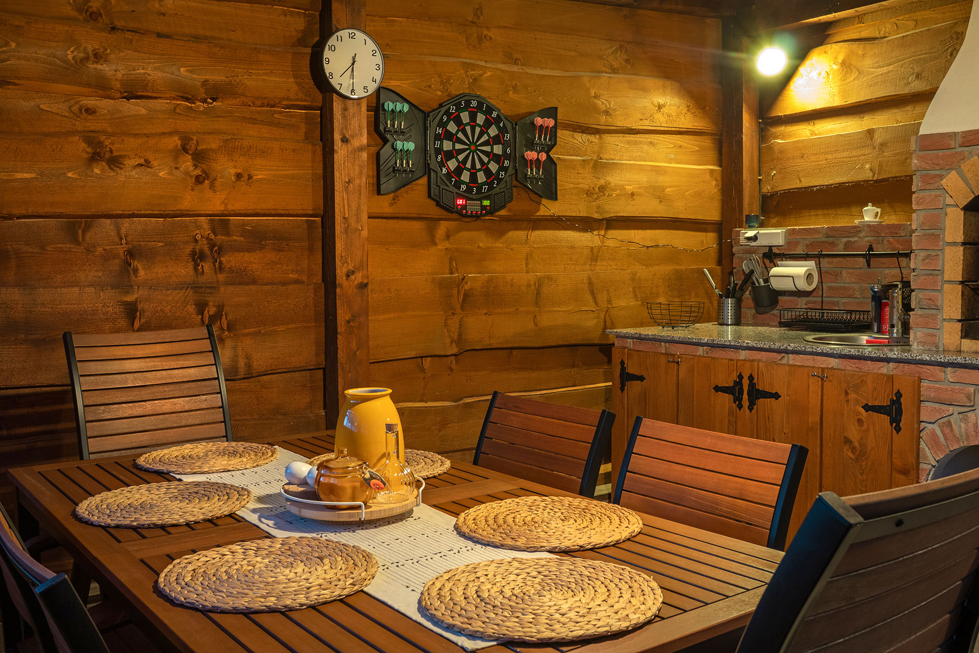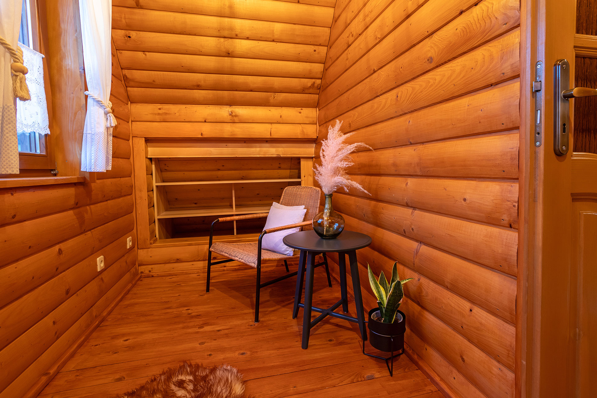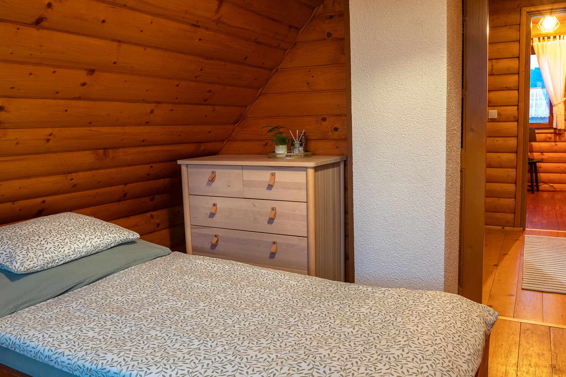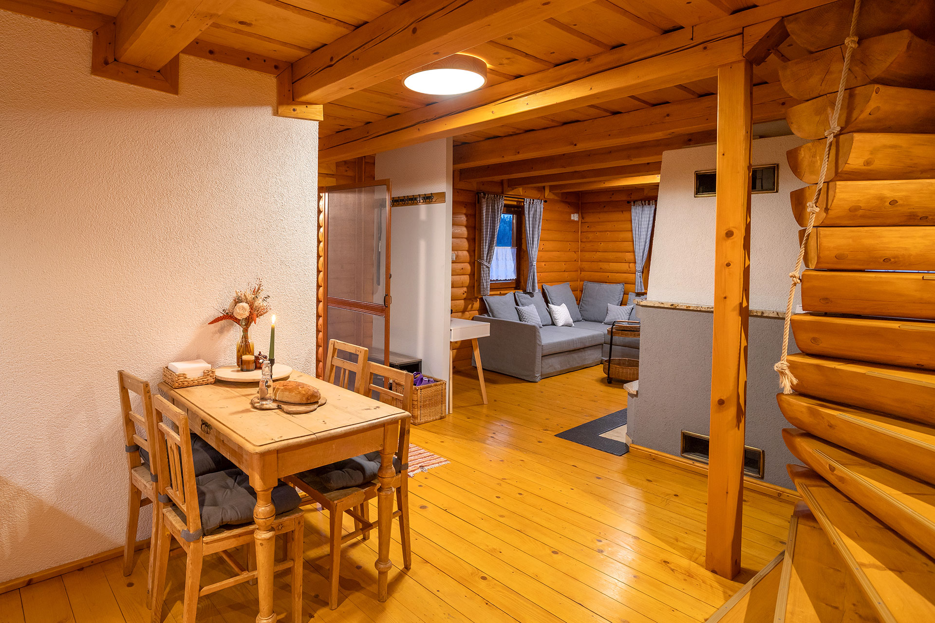 Chata sa prenajíma ako kompletný objekt, ktorý ubytuje 6-8 hostí a okrem detí do 3 rokov majú u nás ubytovanie zadarmo aj Vaši štvornohí miláčikovia. Na poschodí sa nachádzajú tri samostatné izby a nová toaleta. Prízemie je vybavené toaletou so sprchovým kútom, kuchyňou spojenou s obývacou časťou a krbom, ktorý rozvonia celú drevenicu. V kompletne vybavenej kuchyni si môžete vyčarovať vaše obľúbené dobroty, o riady sa vám postará umývačka riadu, o špinavú bielizeň práčka so sušičkou a o šálku kávy kávovar Dolce Gusto.